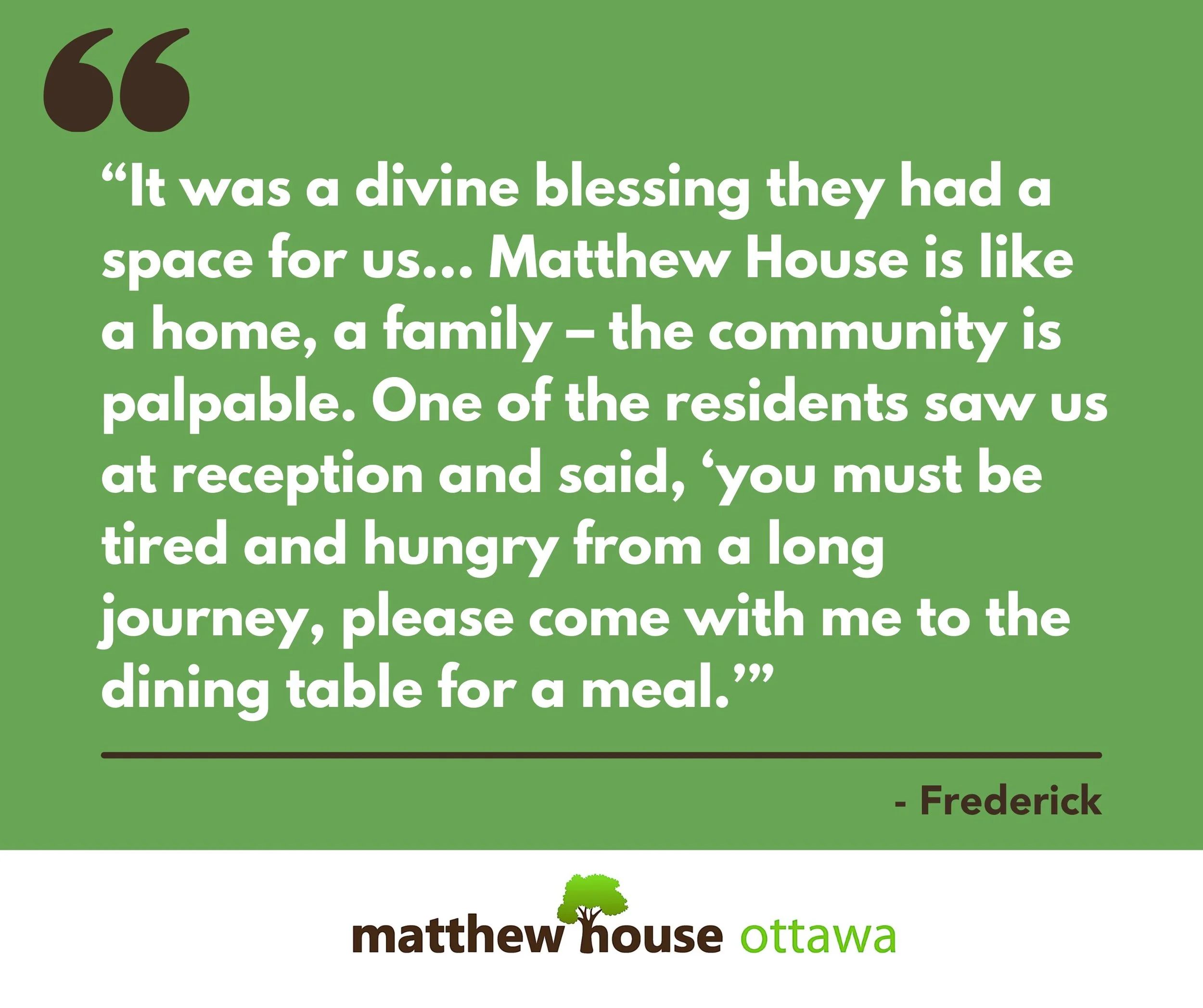 Imagine how you feel when you walk through the door to your home. Your relief and immediate comfort of belonging. That’s Matthew House Ottawa.